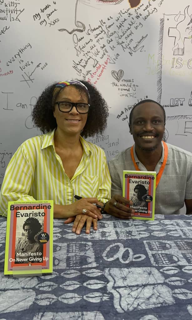 After six years of mentioning Bernardine Evaristo’s name for a trophy-parade—as one of only two writers of Nigerian origin to have won the Booker Prize—I finally sat before her and watched her discuss her memoir, Manifesto on Never Giving Up, hailed by The Times as “the perfect read for everyone who dreams big.”