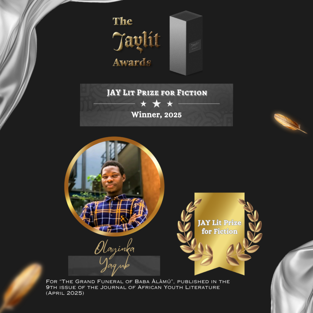 The JAY Lit Prize for Poetry was won by Mariam Mohammed for her poem “The B(lack)ody as a Map to Self,” which was published in Issue 9. The JAY Lit Prize for Fiction was won by Olayinka Yaqub for his short story “The Grand Funeral of Baba Àlàmú,” also published in Issue 9, while The JAY Lit Prize for Non-Fiction was won by Naomi Nduta Waweru with her essay “Poems Holding My Hand”, published in Issue 10. The full winners list is as follows: