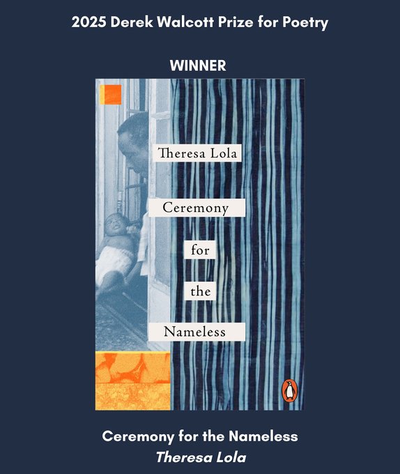 British-Nigerian poet and writer Theresa Lola has been revealed as the joint winner of the 2025 Derek Walcott Prize for Poetry for her poetry collection Ceremony for the Nameless. She shares the honour with Irish poet Mary O’Malley, recognised for her collection The Shark Nursery.